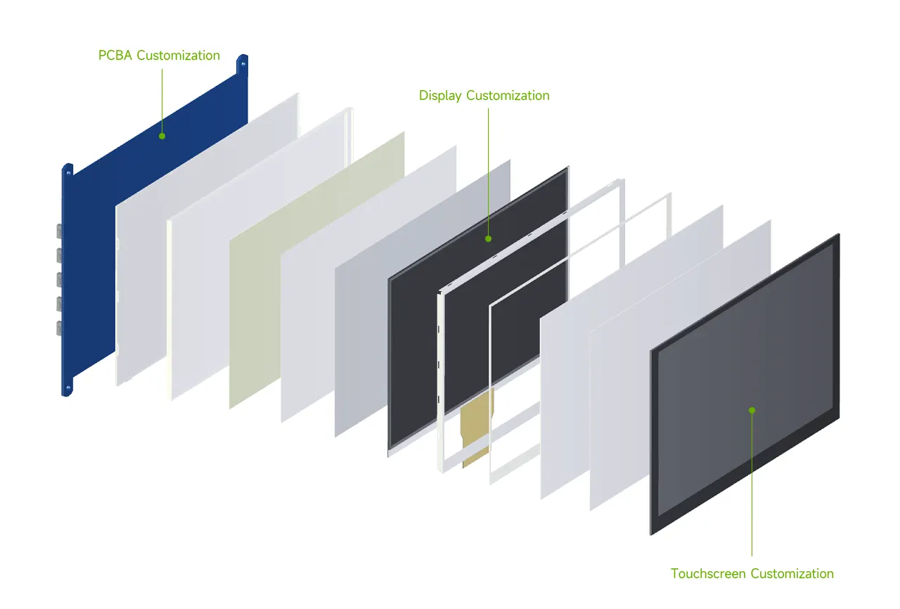We offer customization services based on existing products, allowing modifications to components such as touch panels (TP), liquid crystal displays (LCD), printed circuit board assemblies (PCBA), and software.